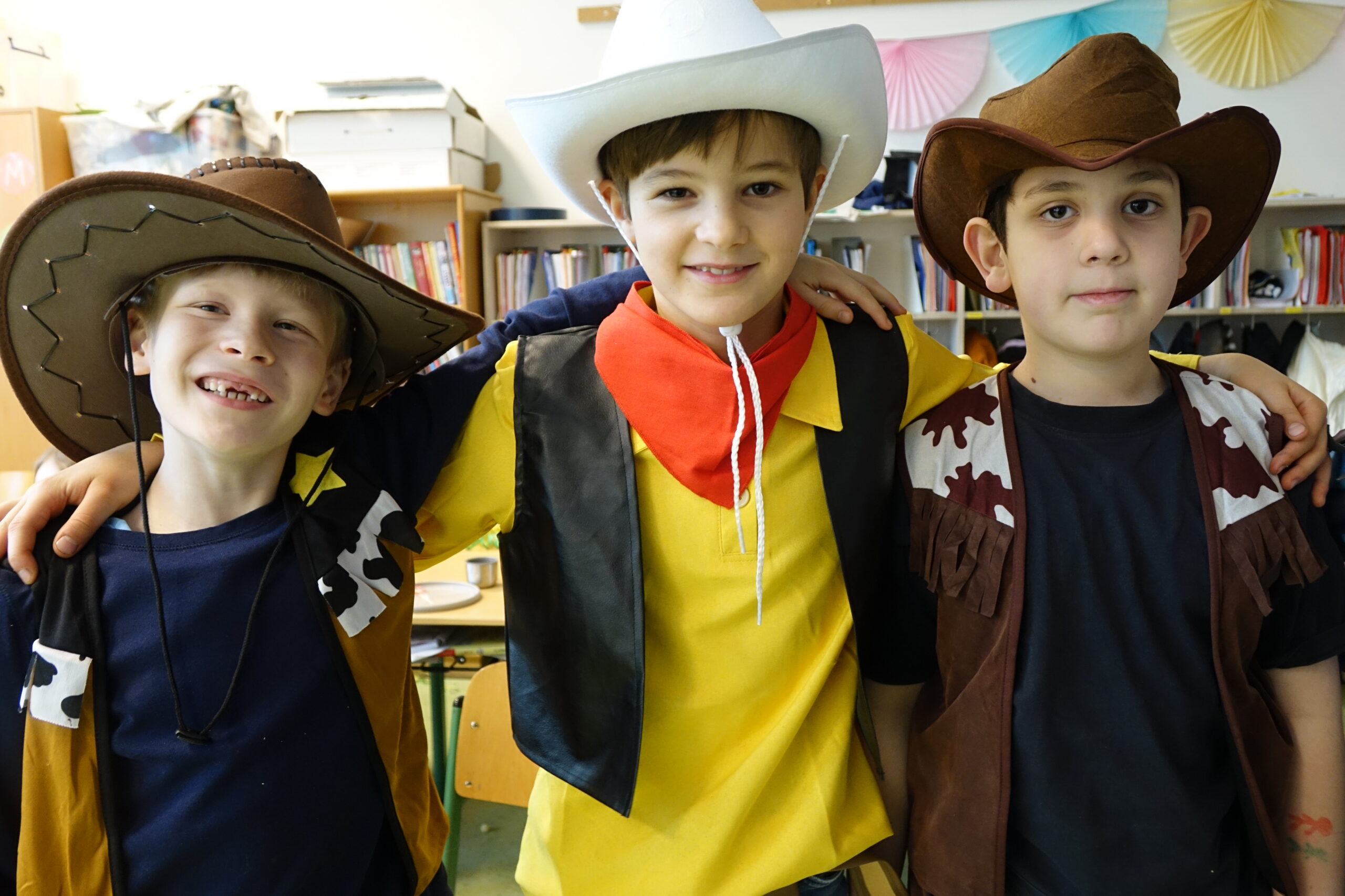 Die Klassenzimmer waren mit Girlanden und Luftballons bunt geschmückt, es wurden allerlei Köstlichkeiten mitgebracht und die letzten Kostümgeheimnisse mit großer Freude gelüftet.