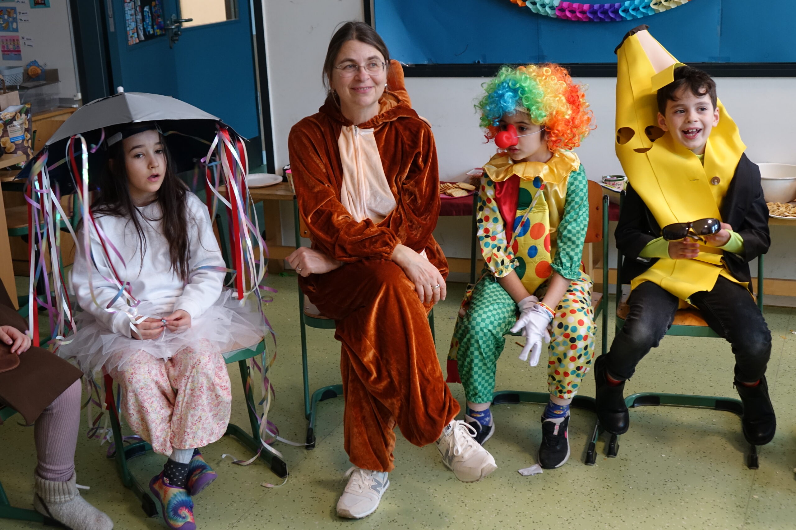 Neben den klasseninternen Feiern, tanzten und lachten die einzelnen Jahrgangsstufen zu stimmungsvoller Musik in der Aula und die VorschülerInnen im Musikraum. Dabei wurden nicht nur die tollen und kreativen Kostüme der Kinder bewundert, sondern auch die der Lehrerinnen.