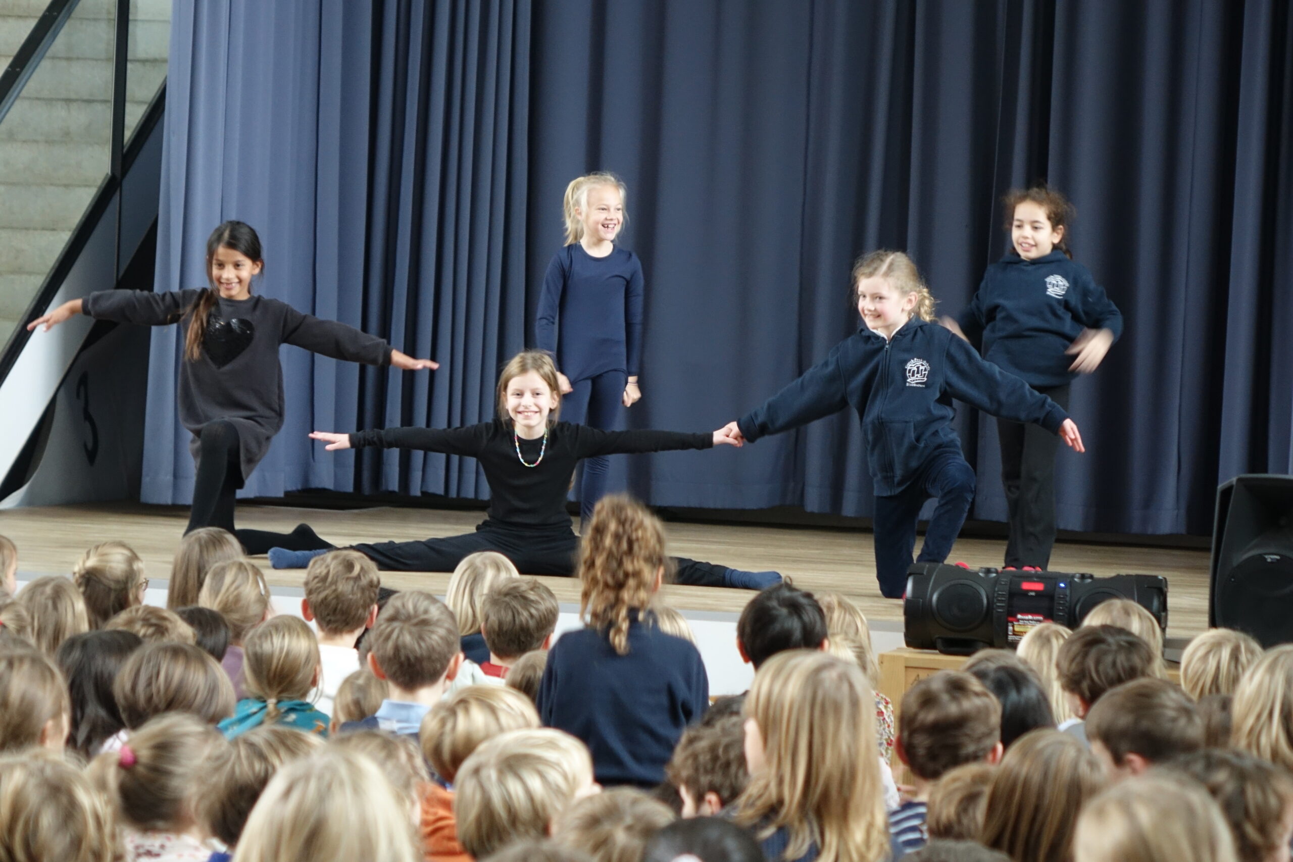 Die 3a eröffnete die Vorstellung mit dem Lied „Das ist unser Wald“ und einer kleinen Choreografie. Anschließend zeigte die 4f eindrucksvolle Akrobatik, bevor die 1b mit einem fröhlichen Weihnachtstanz für erste Adventsstimmung sorgte.